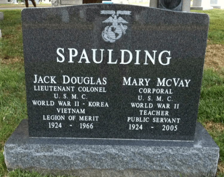 - Gravestone of LTC Jack Spaulding, U.S. Marine Corps. Accessed at https://ancexplorer.army.mil/publicwmv/index.html#/arlington-national/search/results/1/CglTcGF1bGRpbmcSBEphY2s-/ on February 22, 2023.