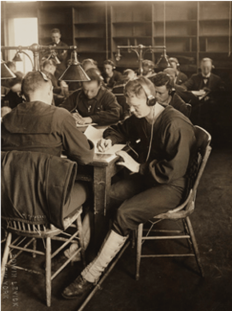 - U.S. National Archives. 1918. Radio Room at Harvard Radio School Class. Accessed from https://nara.getarchive.net/media/colleges-and-universities-harvard-university-us-naval-radio-school-harvard-b02610 on June 16, 2024.